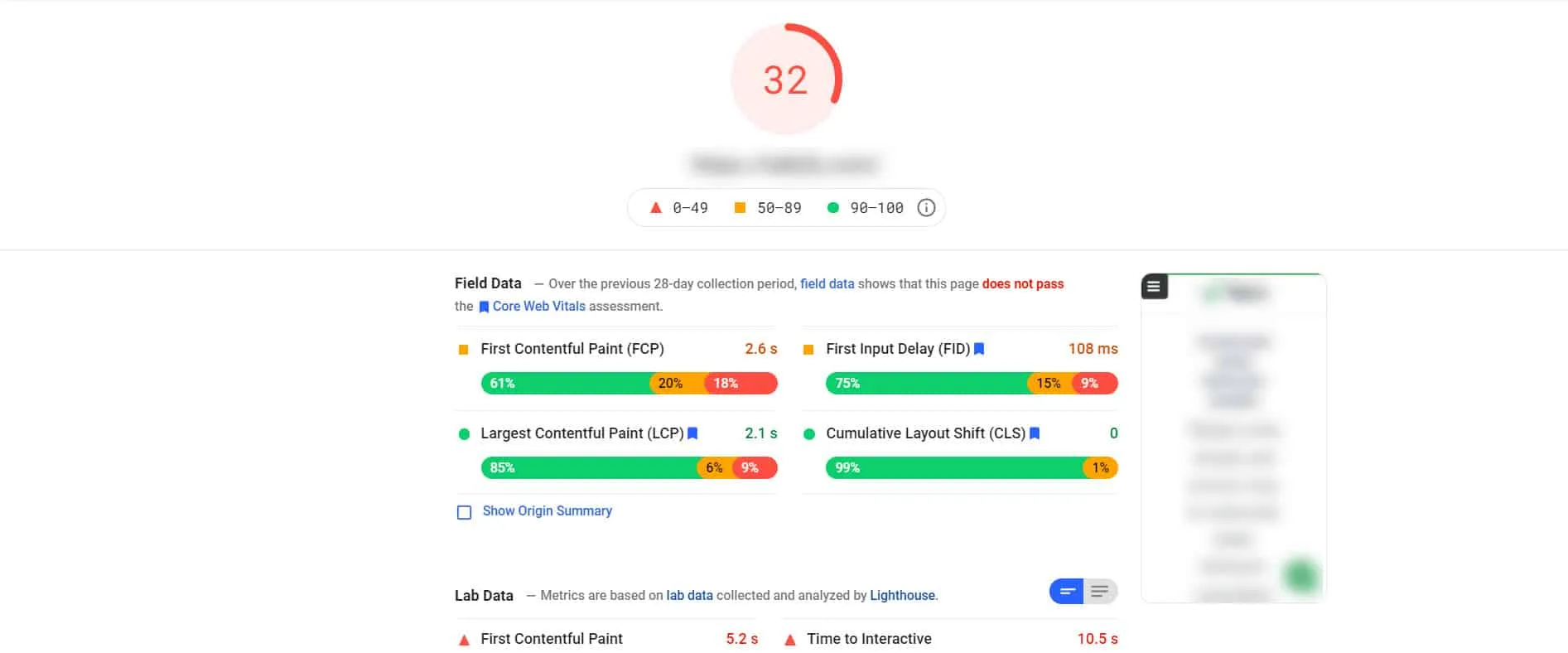 To check your site’s Core Web Vitals scores, go to Google PageSpeed Insights and enter your domain in the text area. On the results page, you will see your CWV scores, along with suggestions on how to fix the issues.